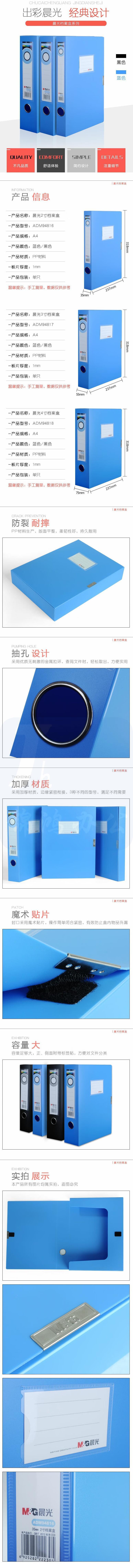 晨光 A4档案盒粘扣资料盒55mm蓝色 ADM94817