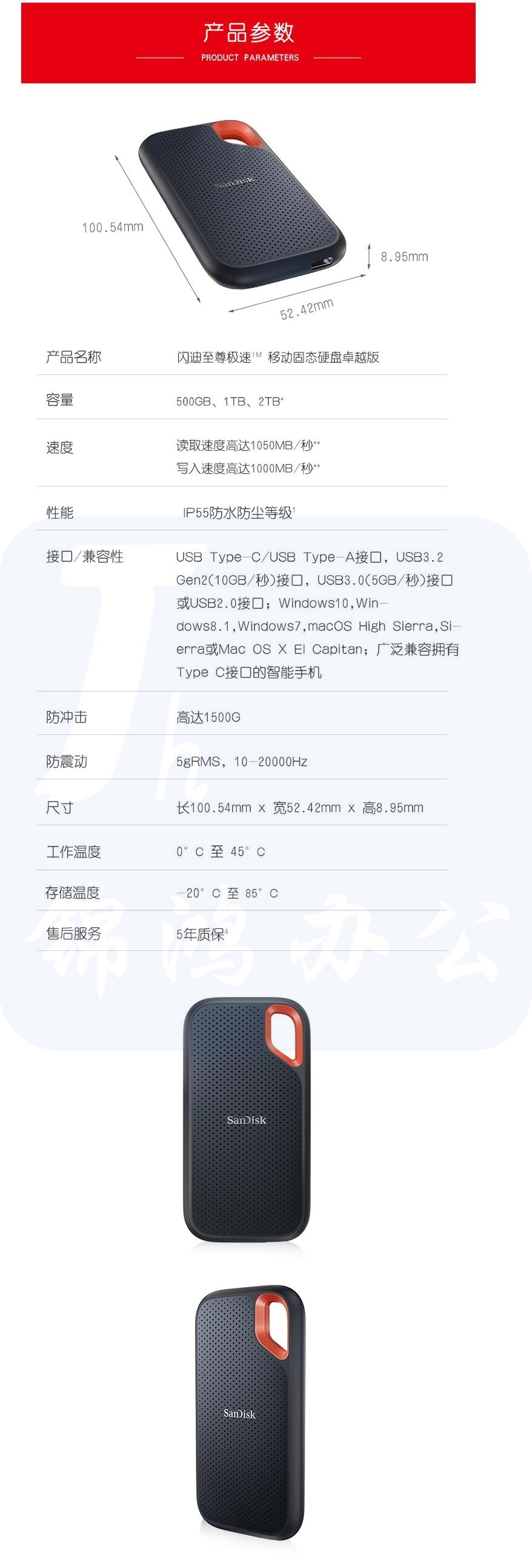 闪迪(SanDisk)1TB E61移动硬盘 传输速度1050MB/s IP55等级三防保护