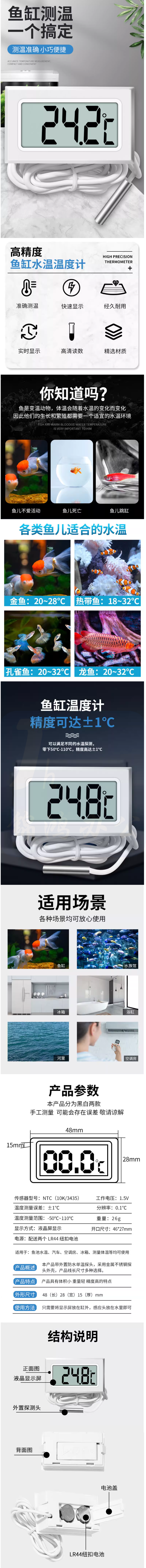 带探头数显温度计 传感器冰箱温度计 2秒1米 货号:JC