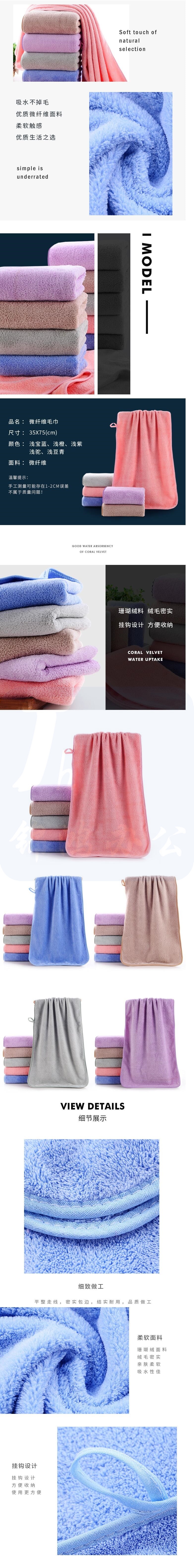 软绒毛巾 柔软吸水成人家用毛巾 洗脸面巾 尺寸35*75cm