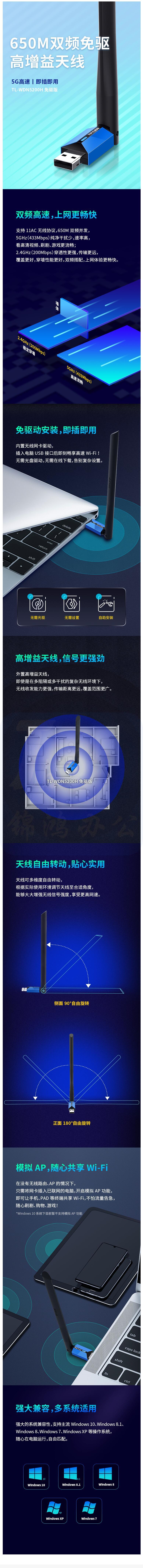 普联/TP-LINK USB无线网卡 TL-WDN5200H 免驱版 AC650双频5G网卡