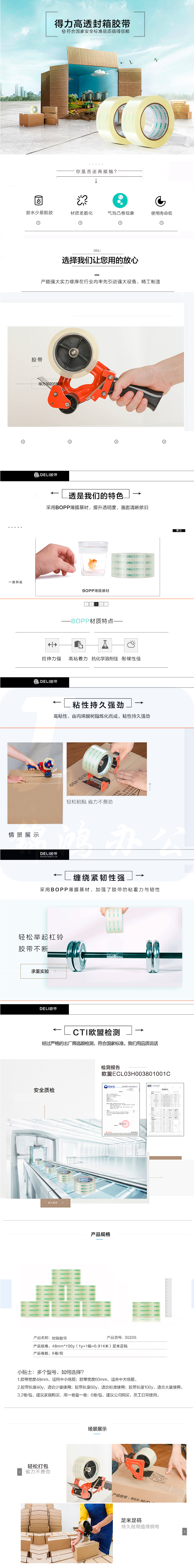 得力30200封箱胶带48mm*30y*50um(超透明)(6卷/筒 单卷价格)