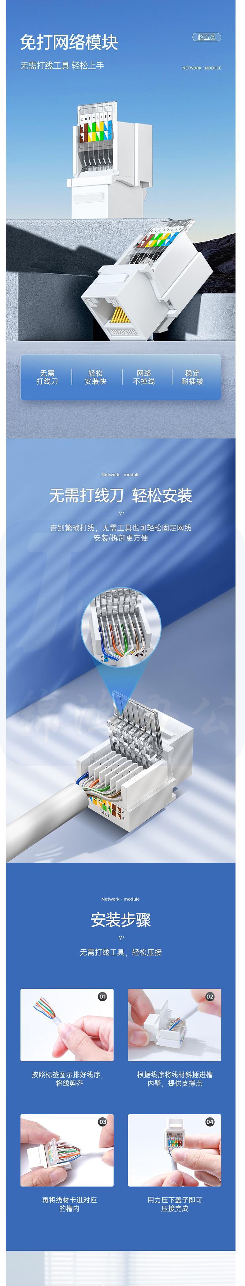 山泽 超五类网络模块 CAT5e免打网线面板模块 MKC51 货号:GD