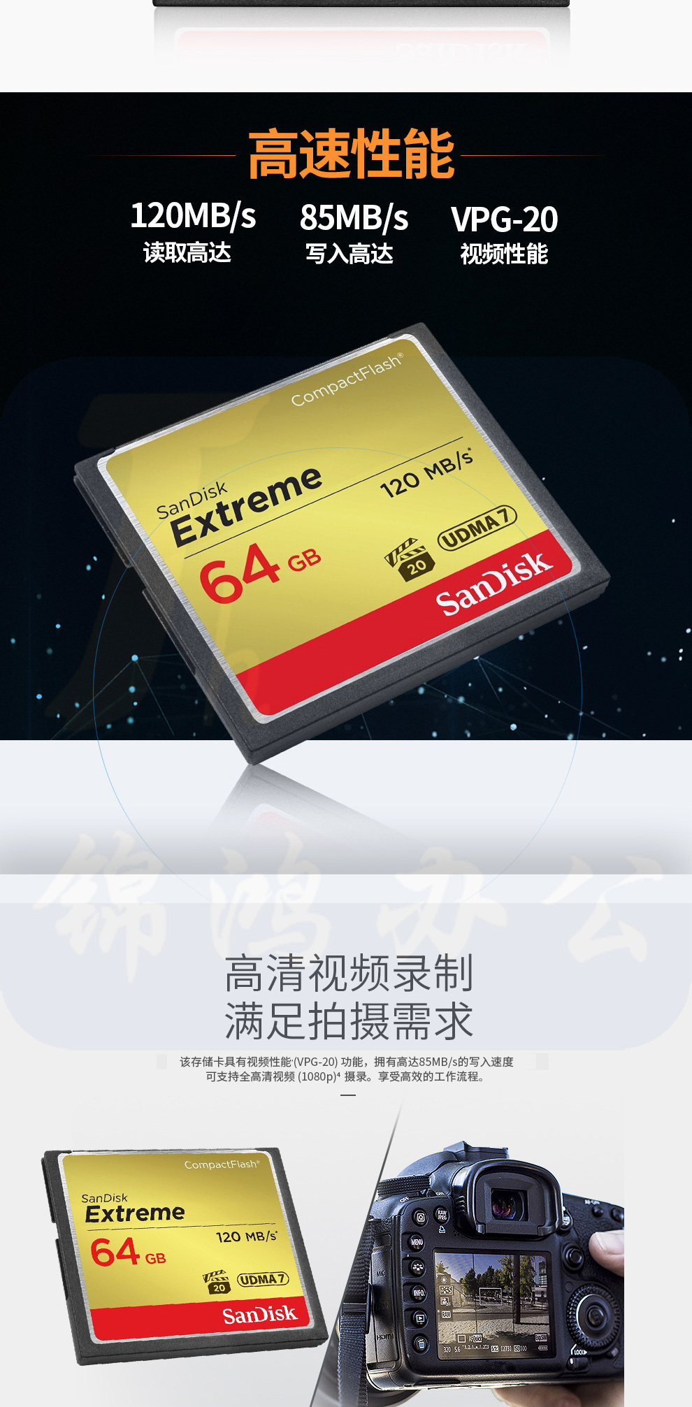 闪迪(SanDisk)64GB 读速120MB/s 写速85MB/s 至尊极速CompactFlash存储卡 UDMA7 CF卡