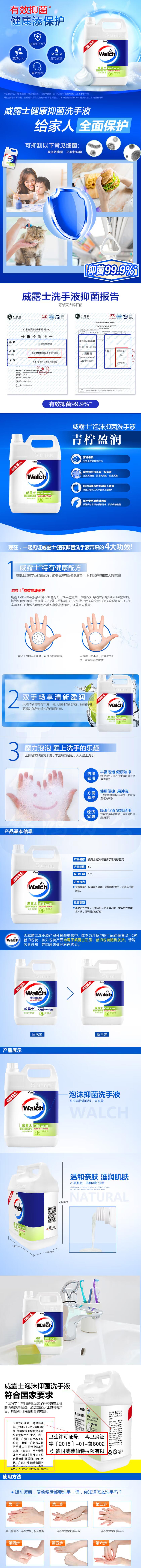 威露士泡沫洗手液青柠盈润5L 抑菌99.9% 家庭酒店餐厅可用 商用大桶装