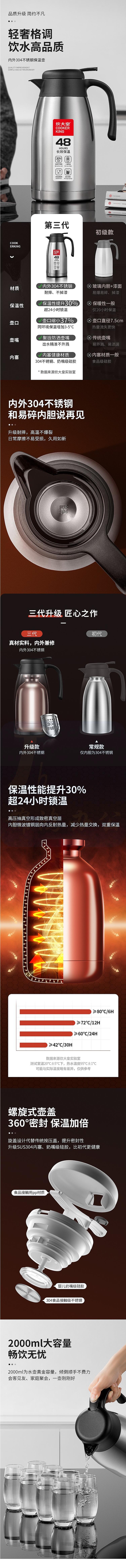 炊大皇2.2升 保温壶 304不锈钢暖壶暖水瓶 2.2L【不锈钢色】