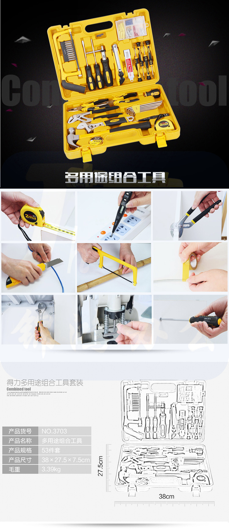得力(deli)3703 多功能组合工具箱 家用//五金工具套装 44件套