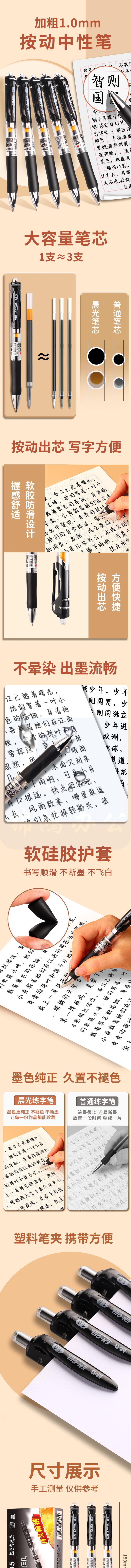 晨光(M&G)K35按动中性笔1.0mm商务签字笔黑色子弹头水笔 12支AGPK3566