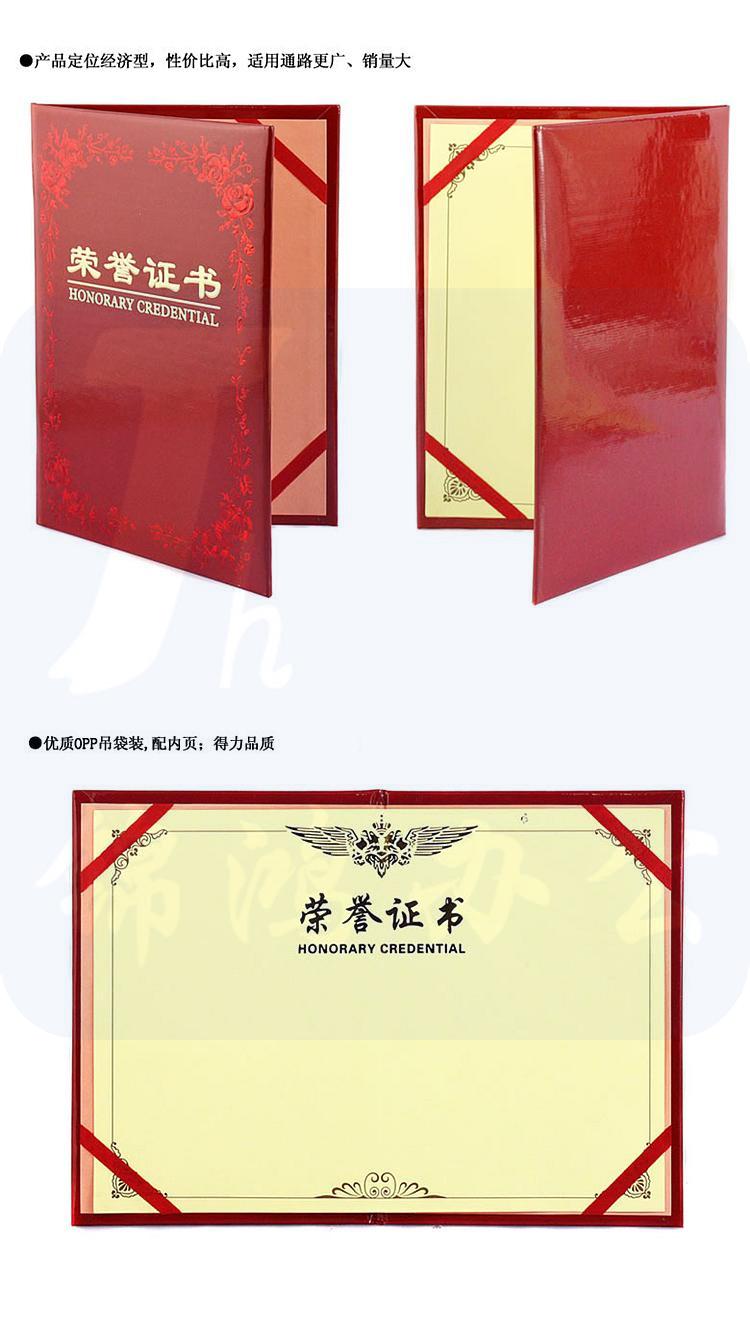 得力 7568-8K 铭誉系列荣誉证书 177*257mm 红色 按本销售