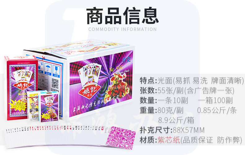 姚记 扑克牌 纸牌 防作弊 黑芯纸 1包10盒