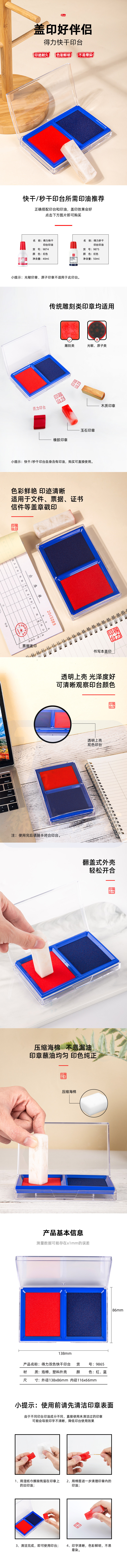 得力(deli)双色快干印台/印泥 红+蓝色 财务办公 9865 一盒两色