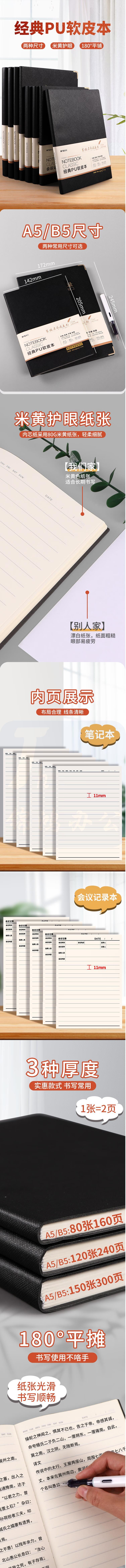 晨光(M&G)B5/150张皮面本 PU办公记事本笔记本黑色会议记录本皮革本商务本日记本PB5F42