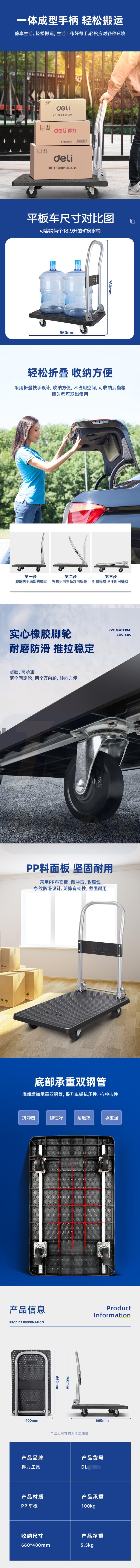 得力 手推车660x400平板车折叠搬运车承重100公斤 DW3470