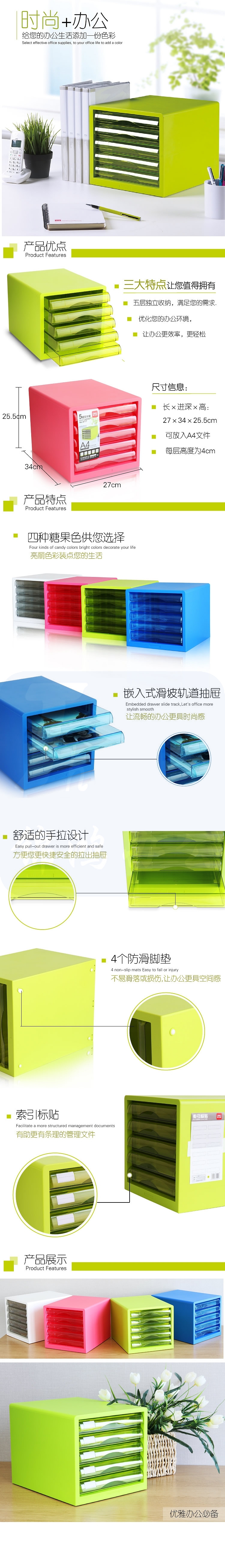 得力 9777 五层桌面文件收纳 抽屉式 带标签 5层可视抽屉275x340x255mm