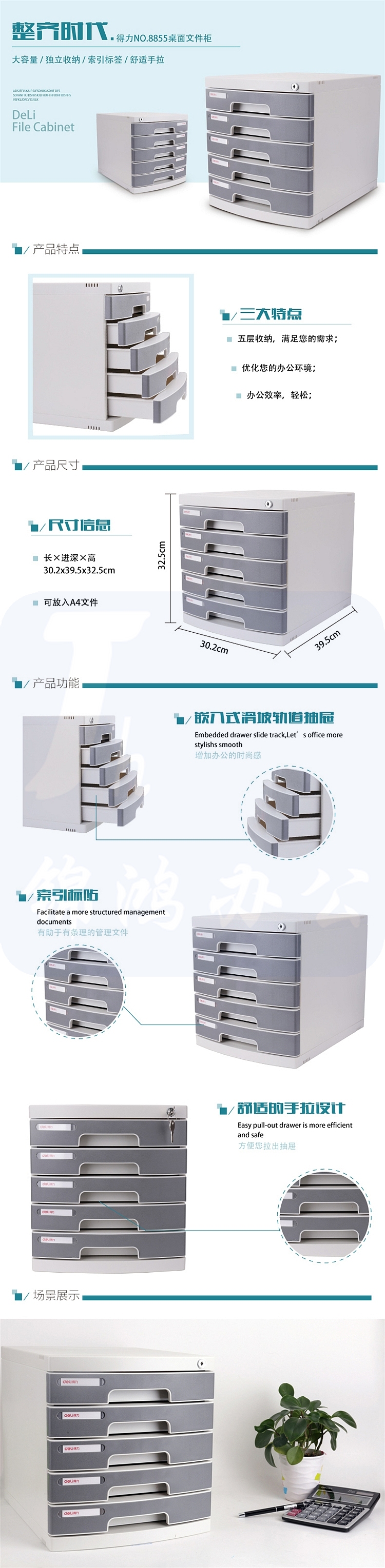 得力(deli)五层带锁桌面文件带锁抽屉收纳柜 8855