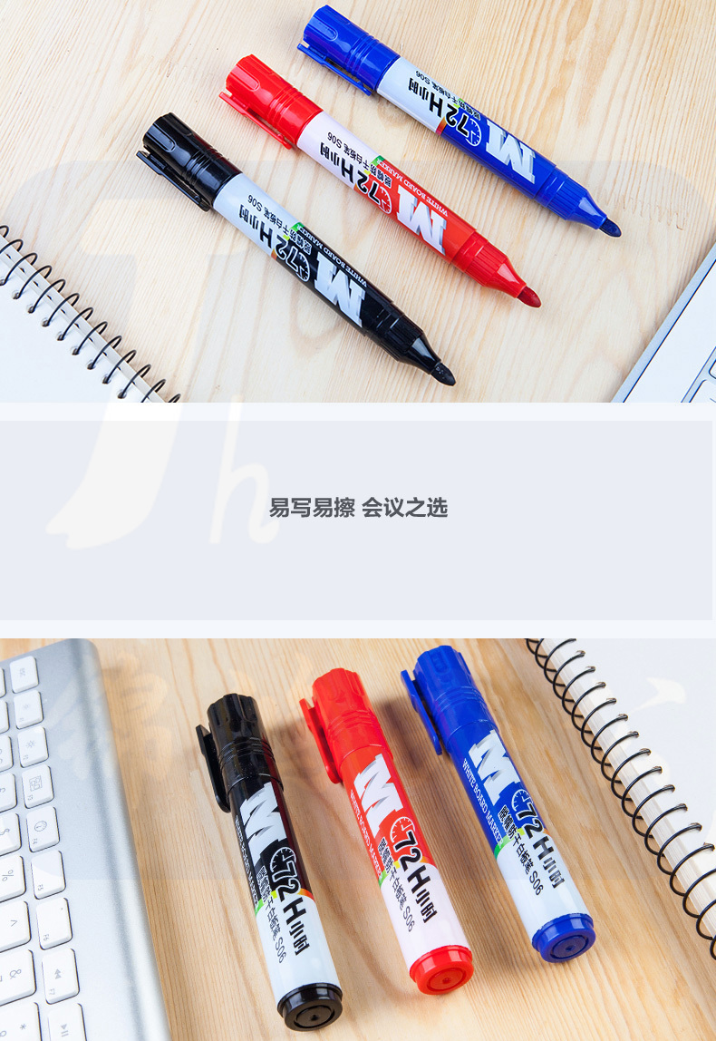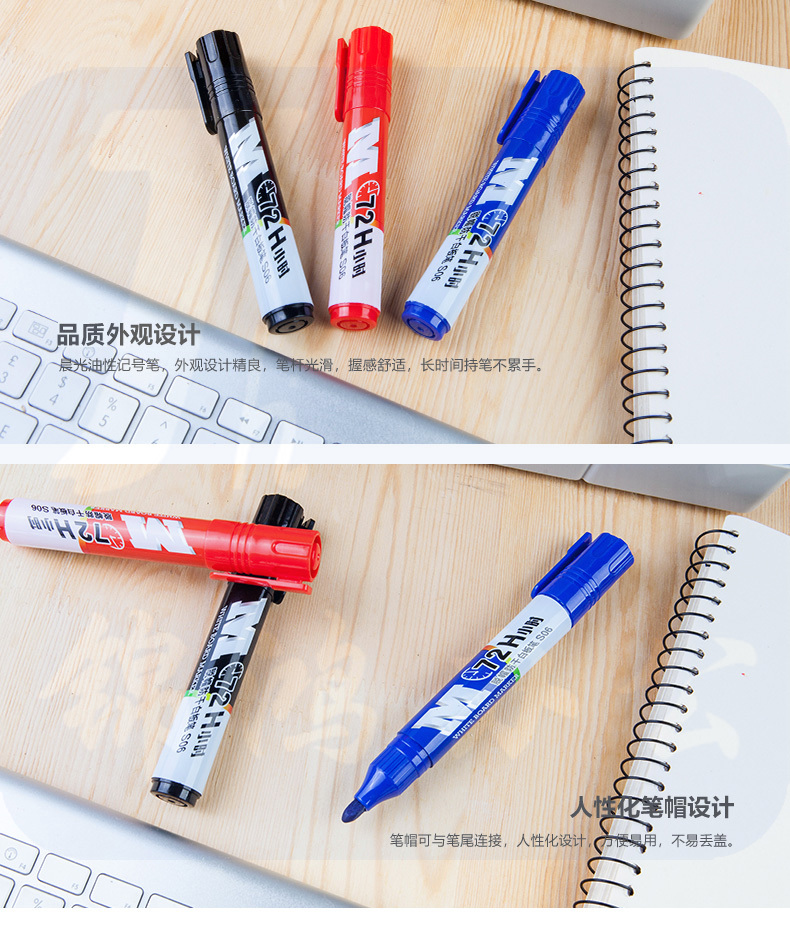 晨光AWMY6302 72小时脱帽防干白板笔S06黑色10支装