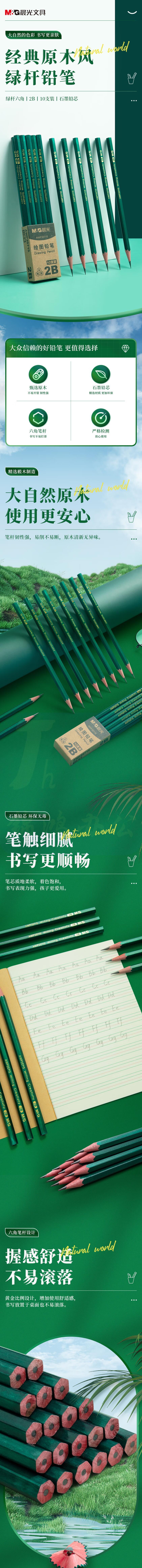 晨光(M&G)2B铅笔10支 经典绿杆六角木杆铅笔 AWP35715