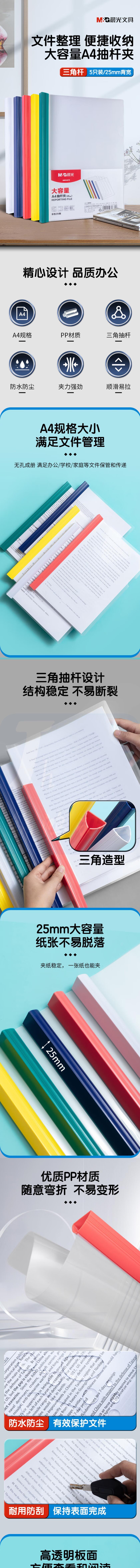 晨光 25mm透明彩色抽杆夹5个装大容量办公报告夹拉杆夹 ADMN4279