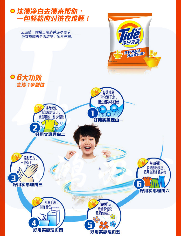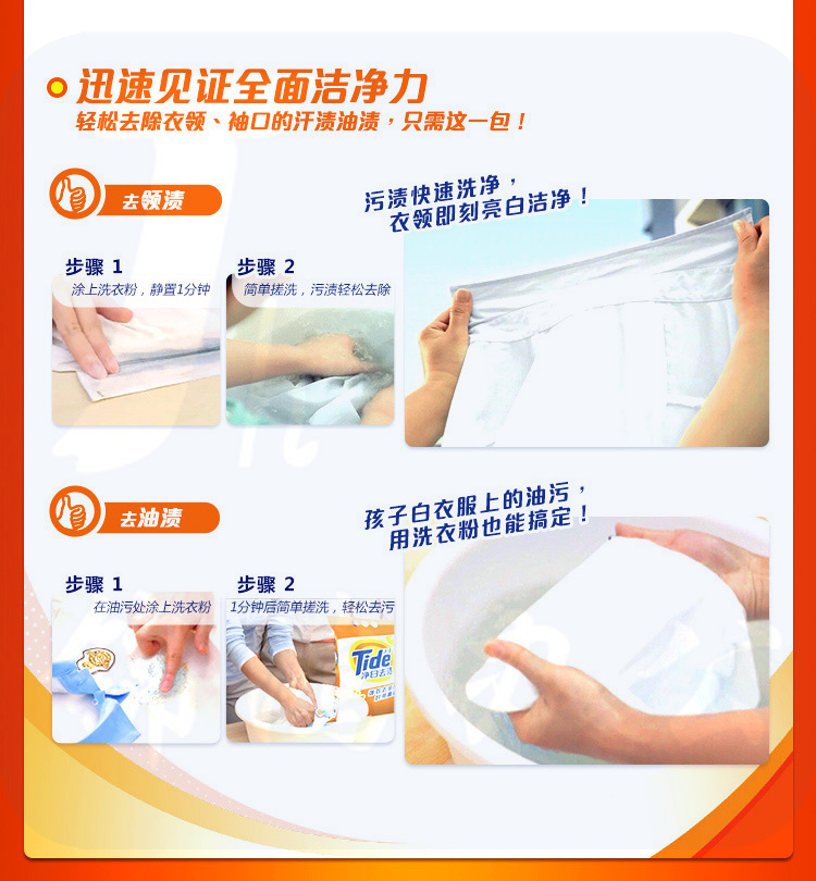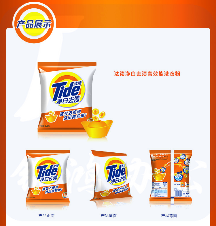 汰渍(Tide)净白去渍洗衣粉508g 12袋/件
