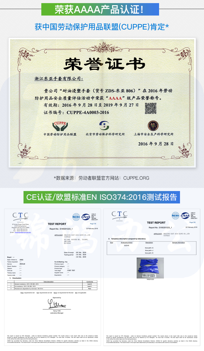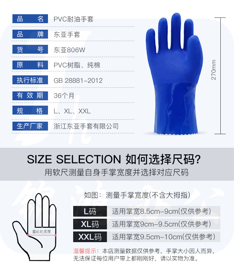 东亚(EAST)806 耐油手套耐酸碱手套工业浸塑橡胶手套劳保手套大码防水