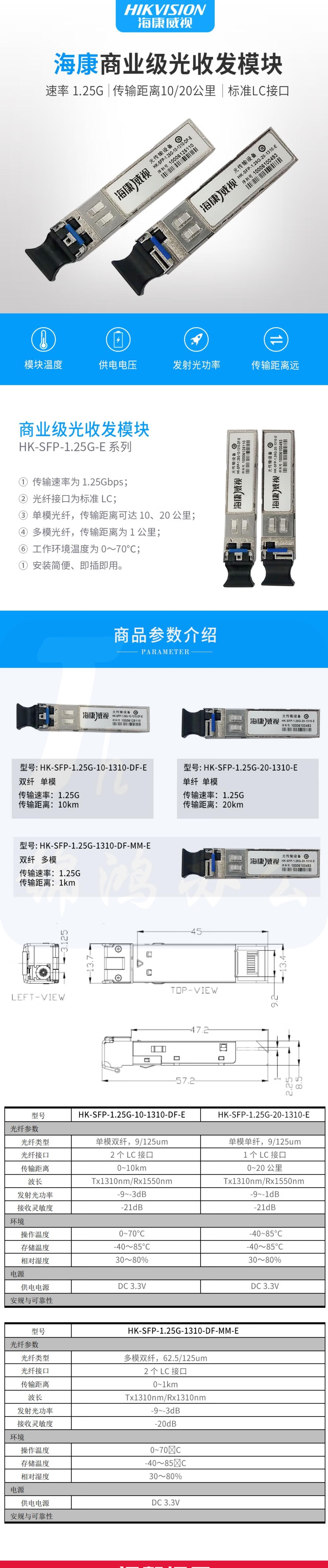 海康威视 光纤模块转换器千兆单模千兆双纤光模块商业级SFP模块 HK-SFP-1.25G-10-1310-DF-E