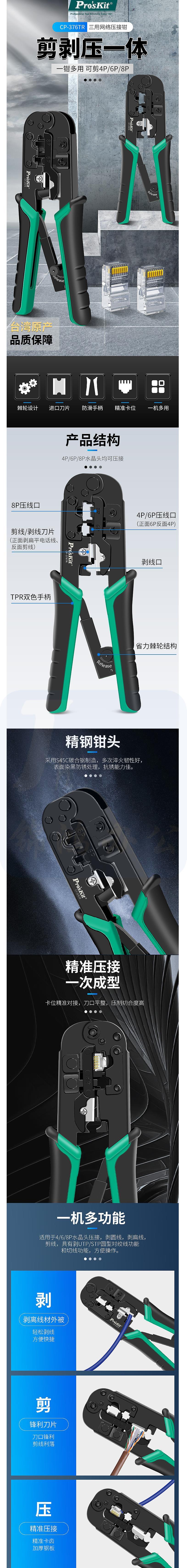 宝工(Pro'sKit)CP-376TR网络网线钳电话线水晶头压线钳三用进口468P 货号:GD