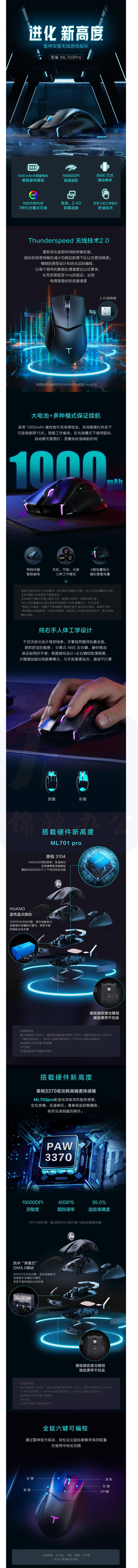 雷神(ThundeRobot) 影鲨ML7 Pro双模有线无线游戏鼠标 ML703 PRO
