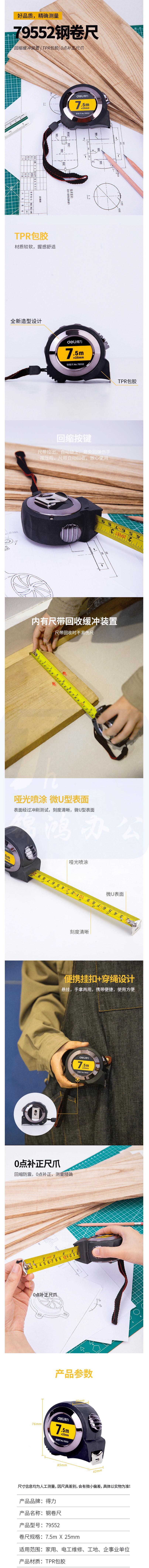 得力(deli)7.5m全包胶自锁钢卷尺7.5米盒尺 79552