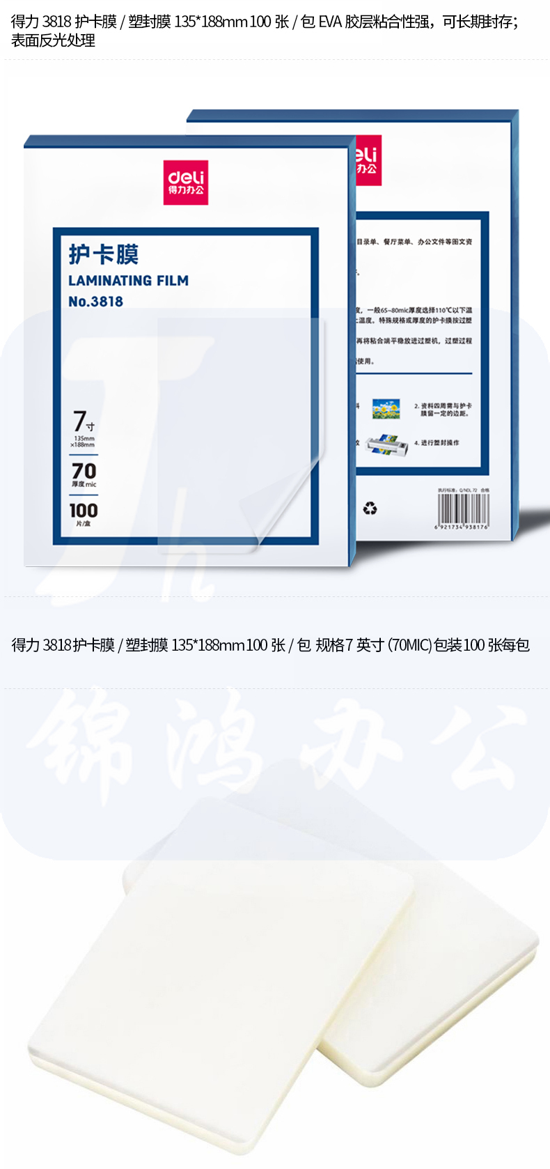 得力 7寸塑封膜 护卡膜照片文件过塑膜135*188mm 100张 3818