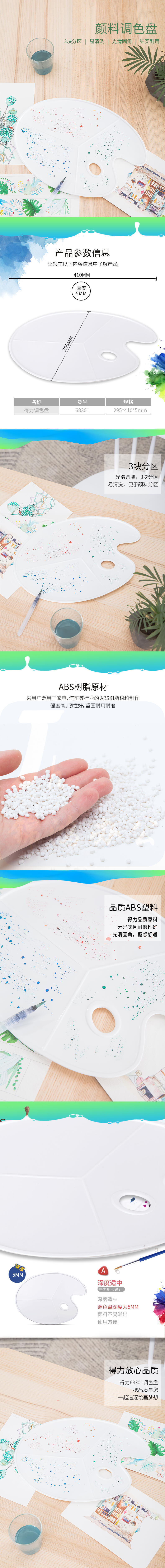 得力 68301 画笔调色盘 椭圆调色板 3块分区调色盘