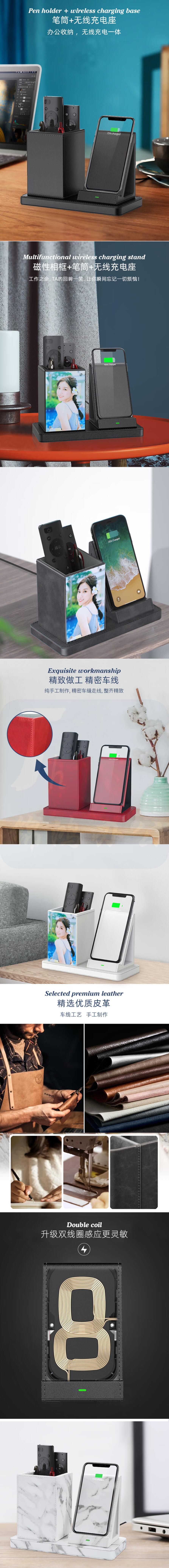 多功能智能笔筒 桌面收纳盒带手机无线充电功能 二合一雅典黑【笔筒+无线充】