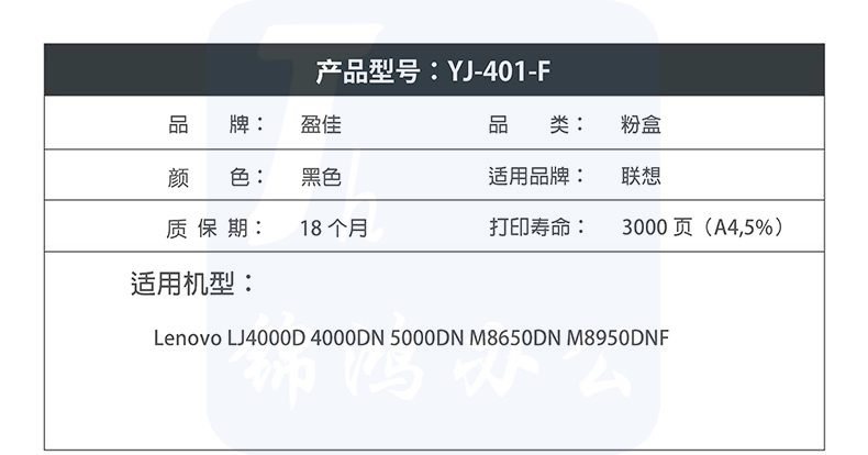 盈佳YJ LT401黑粉 适用机型:Lenovo LJ4000D 4000DN 5000DN M8650DN M8950DNF