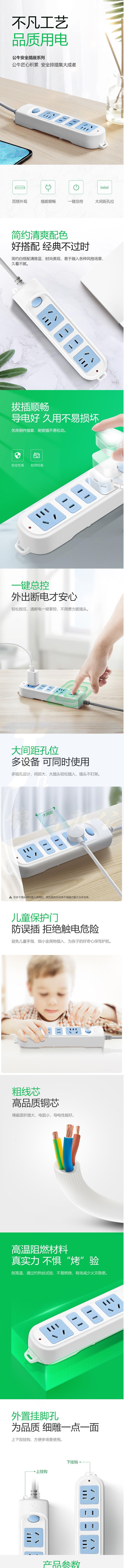 公牛GN-607 4位总控全长1.8米 插排接线板插座