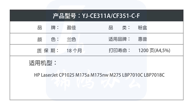 盈佳YJ CE311(126A)/CF351A(130A)兰粉(带芯片)
