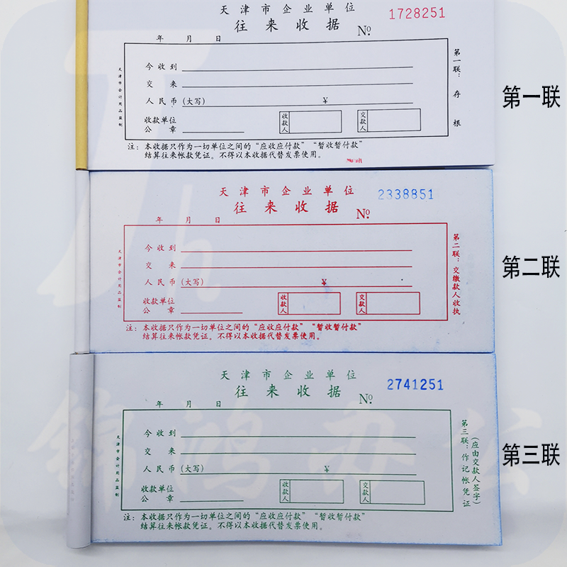 天津市企业单位往来收据 专用收据 无碳复写连号款货号:JC