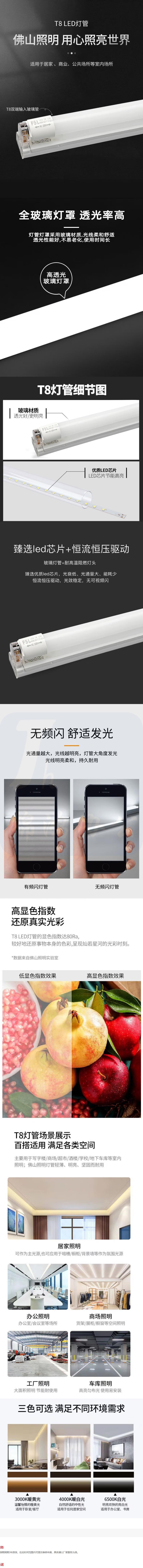 佛山照明 T8灯管1.2米16W 白光LED日光灯管双端输入一体化灯管加支架(6500K)