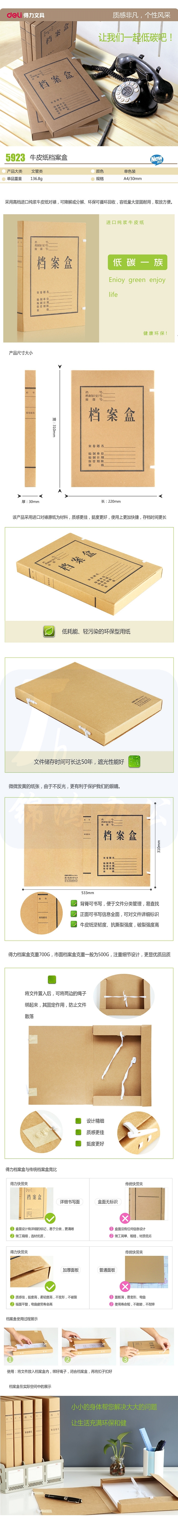 得力 5923 30mm纯浆牛皮纸档案盒337g高档纯浆牛皮纸文件盒10个