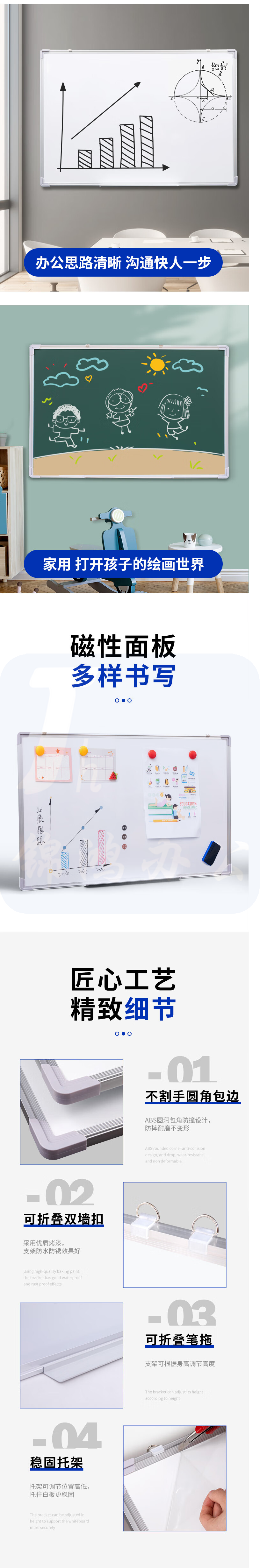 挂式双面白板 可移动大白板留言画板 90*120cm 货号:WY