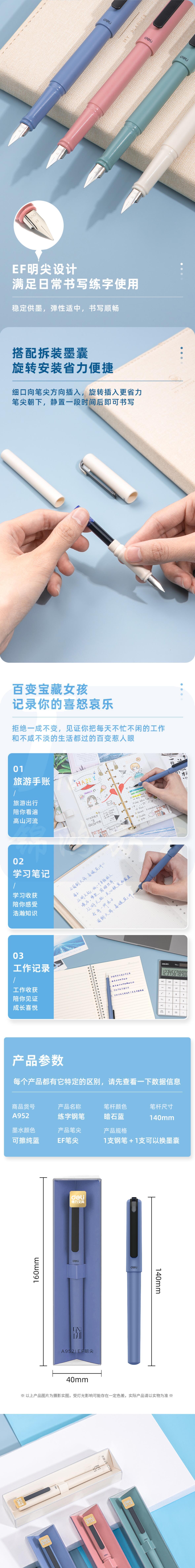 得力(deli)乐素正姿练字钢笔 书写签字墨水笔EF明尖(豆沙红)A952