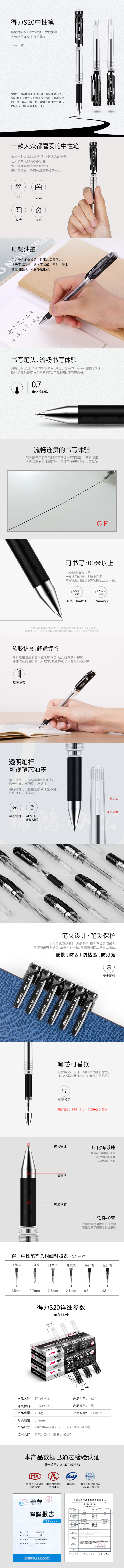得力(deli)0.7mm办公中性笔水笔签字笔 12支/盒 S20黑色