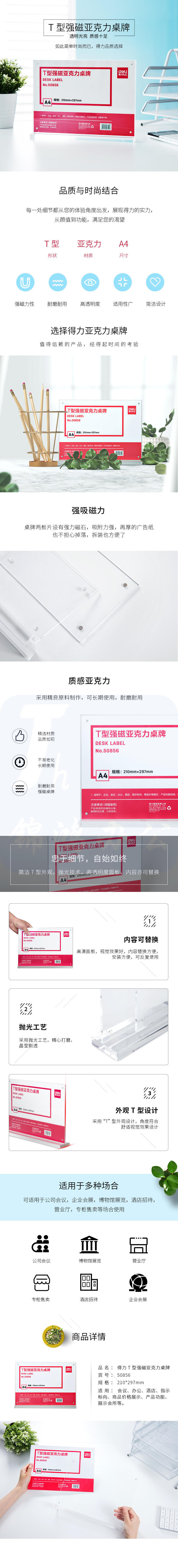 得力T型桌牌 A4横式透明强磁吸附亚克力桌牌50856