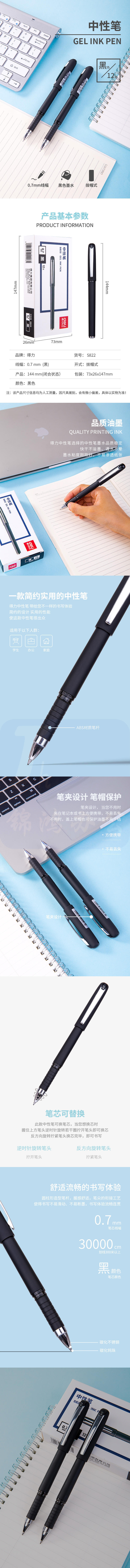 得力(deli)0.7mm办公中性笔水笔签字笔 12支/盒DL-S822黑