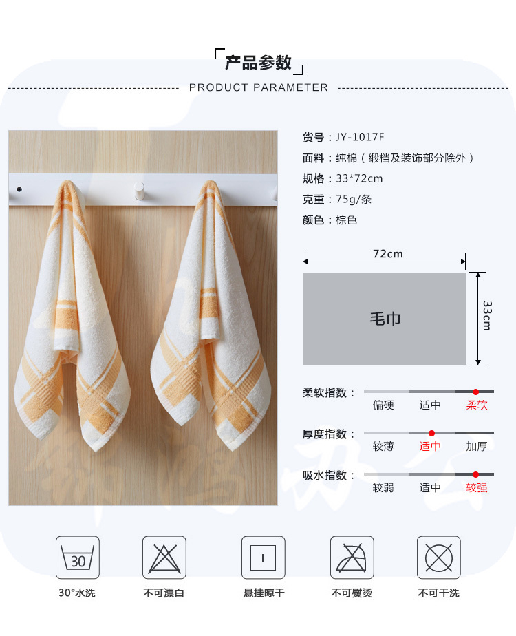 洁玉(JIEYU ) 纯棉毛巾 亲肤透气色织多臂才子洗脸巾单条装 棕色 33*72cm