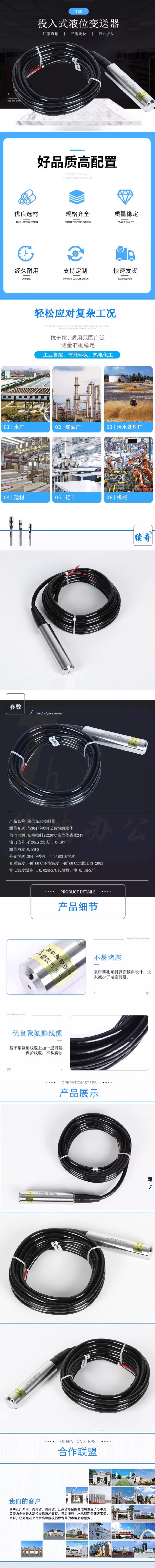 投入式液位传感器 量程0-2米(线缆5米) 4-20mA