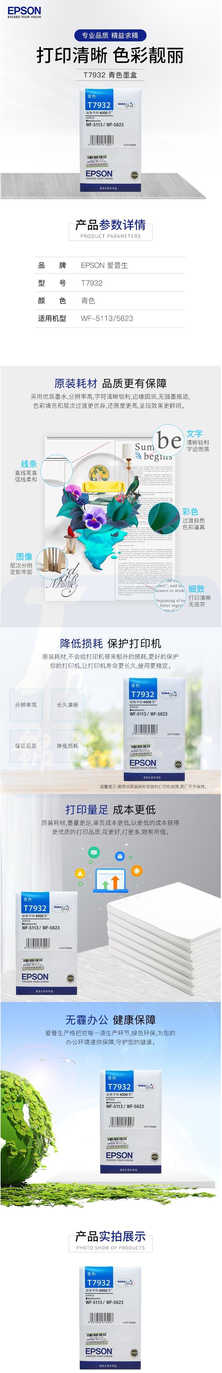 爱普生(EPSON)T7932 青色墨盒 (适用WF-5113/5623机型)约4000页