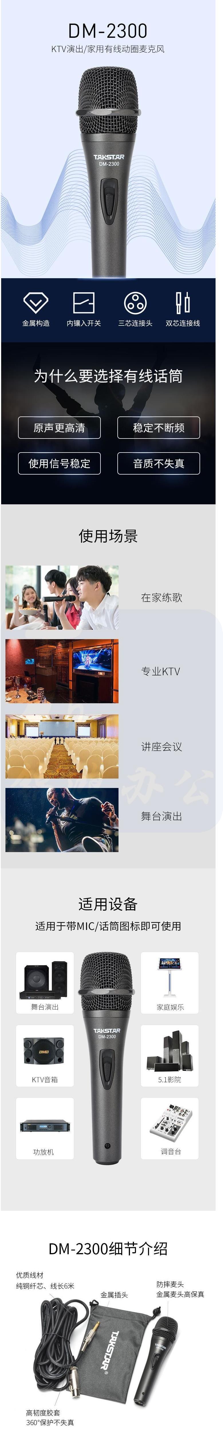 得胜(TAKSTAR) DM-2300有线动圈麦克风 专业唱歌话筒 家庭ktv演唱K歌卡拉OK舞台录 黑色