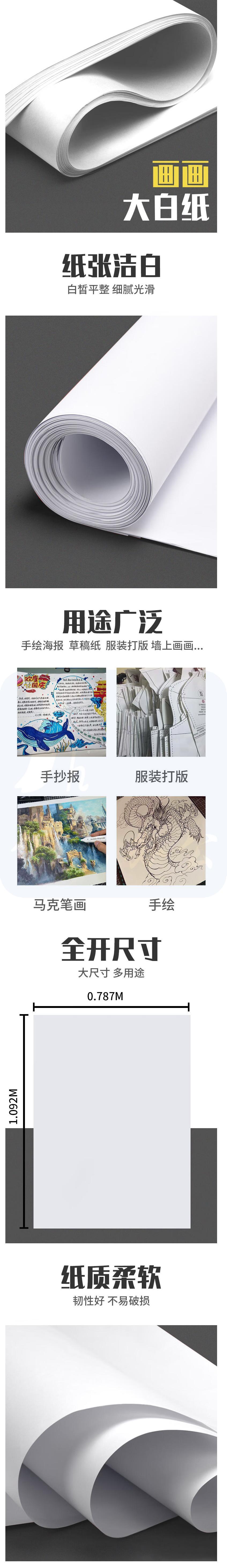 1K纯白色普通大白纸 大张画纸 单位:张 货号:LJ