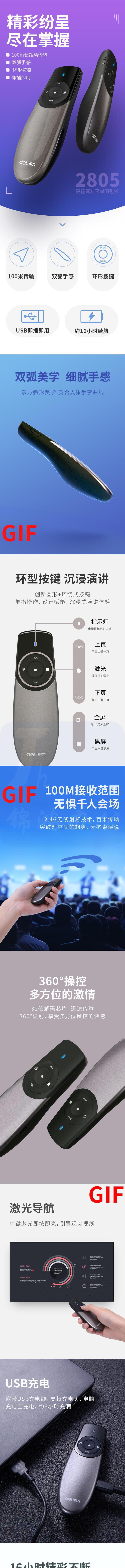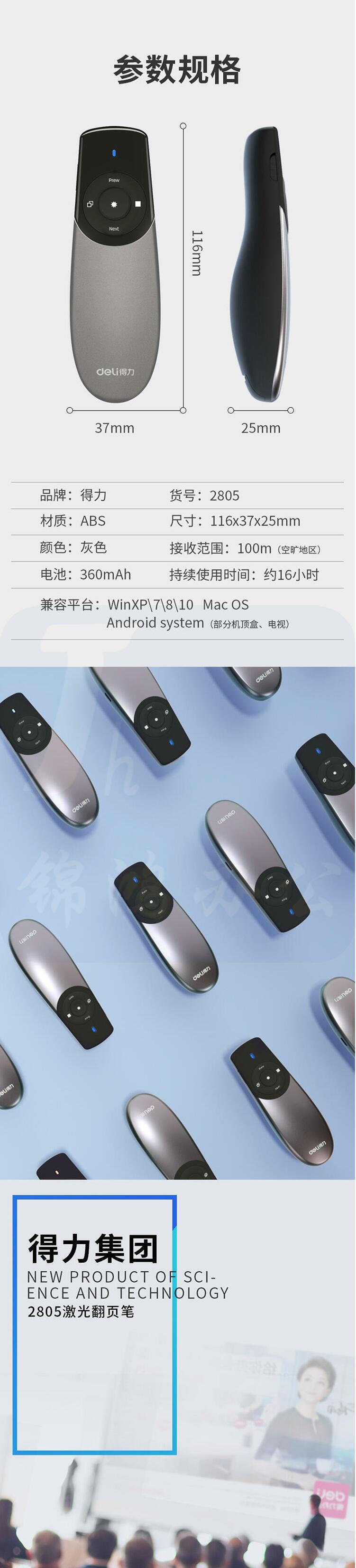 得力(deli)激光笔激光翻页笔PPT演示遥控器笔红外线笔翻页器 黑色经典款100m大容量电池2805