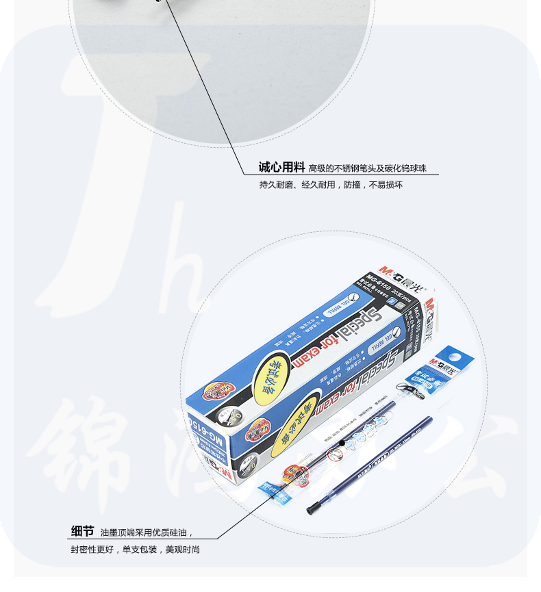 晨光MG6150 中性笔替芯 0.5mm全针管签字笔芯 20支/盒黑色