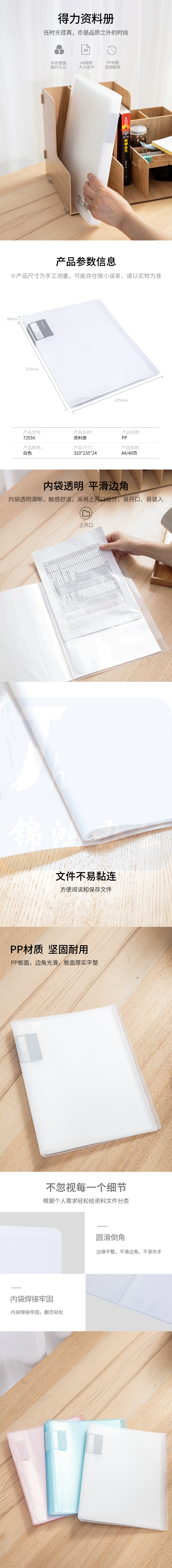 得力72556_40页资料册文件夹插页袋(白)235*310*18mm(单位:个)
